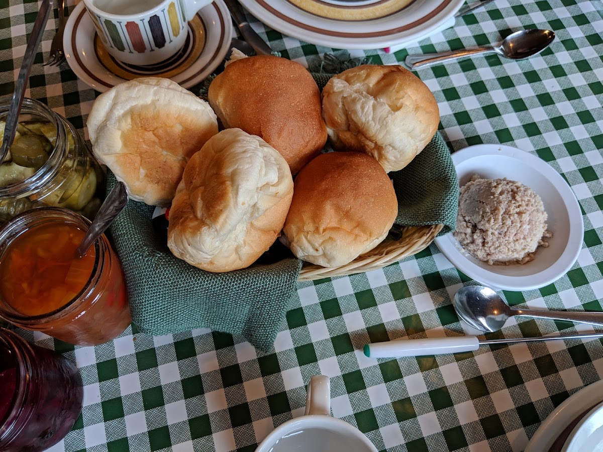 For those who prefer something more substantial, the Maple Pie is a local favorite that beautifully showcases the signature maple syrup. It’s the perfect blend of sweet and savory, with a flaky crust that holds a rich, maple-infused filling. Pair it with a freshly brewed cup of coffee for a truly satisfying meal. The Bread, Eggs, Ham, and Sausage dish is another standout, offering a delicious and hearty option that’s perfect for brunch or lunch. The warm, freshly baked bread, paired with savory eggs, ham, and sausage, makes for an indulgent and comforting meal.